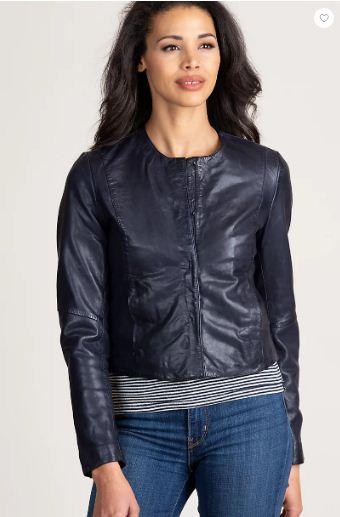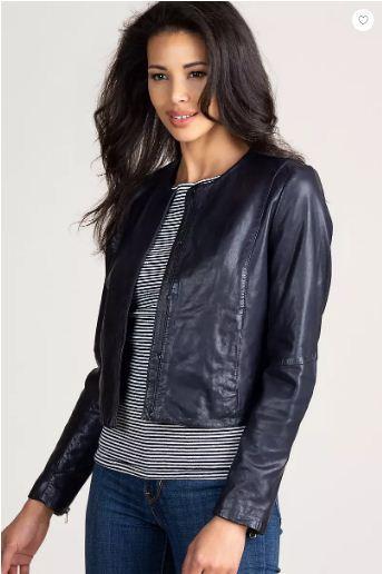 Whether you dress it up with your favorite mini and heels or style it sporty with jeans and moto boots, this sleek little number will be turning heads. Made of smooth lambskin that’s been hand-treated for a unique finish, this cropped leather jacket is collarless, showing off your frame with a graceful scoop neckline. Zippers at the cuffs add edgy detail, while hidden on-seam pockets and front hook closures finish the design.