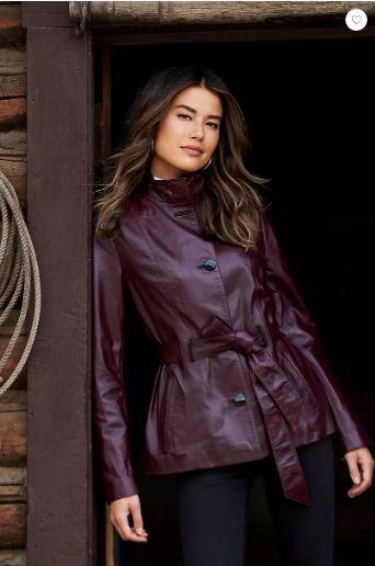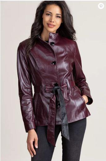 Stunning and stylish, the Tribeca elevates any outfit to utter elegance. Made from premium Spanish leather, our smart leather coat settles the question of what to wear, whether you're traveling, going to work, or stepping out for the evening. Contrast trim at the standup collar, buttons, belt lining, and built-in belt loops make this flattering jacket a standout. Hand warmer pockets and shiny graphic lining finish the look of this everyday jacket that turns heads.