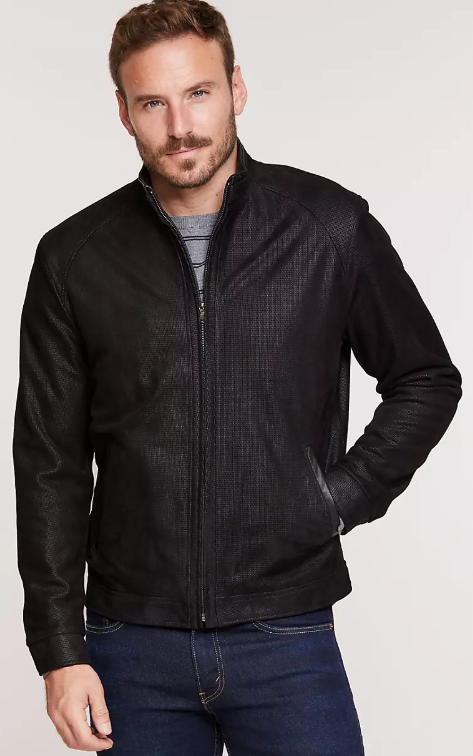 With a handsome drape and a refined yet sporty style, the Zachary takes you from date night to downtown events with cool confidence. This zip-front leather jacket is made from Italian nubuck lambskin leather that’s been embossed for a unique pattern and soft, sueded feel. Smooth lambskin leather trims the pockets, collar, and inside the cuffs and front zipper. Slight padding in the shoulders lends all-day comfort, while two inner and two outer zip pockets offer space for your wallet, keys, and phone.
