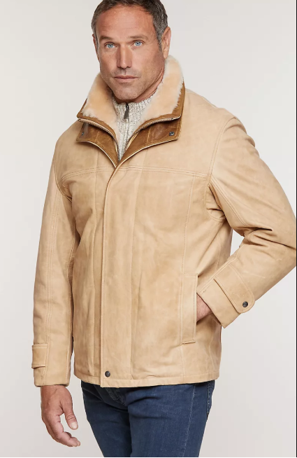 A handsome coat for town or country, our Jack Frost leather coat with sheepskin lining lives up to its name and keeps you cozy when temperatures plummet. Made of fine Italian timber calf leather, it features a Spanish Merino shearling lining that delivers unmatched warmth and comfort, hour after hour. A relaxed fit makes for easy layering, and a zip front makes for easy on/off. For added weather protection, the Jack Frost features a stormflap with four snap buttons and contrasting Italian calf trim inside. Adjustable cuffs feature two snaps for a perfect fit. Hand-warming pockets keep hands cozy.