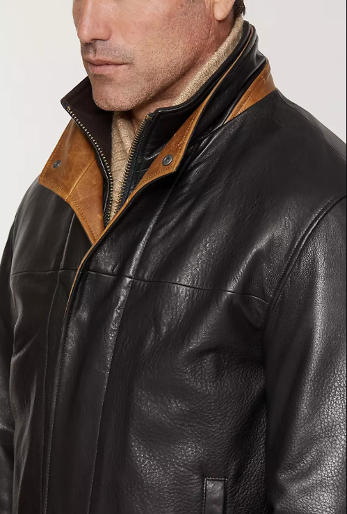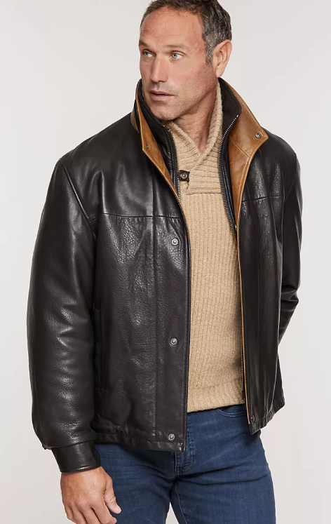 A timeless blend of classic and contemporary, our Romano Leather Jacket will serve you well throughout the seasons. Made of fine Norwegian lambskin that's been drum-dyed for a smooth, natural hand similar to deerskin, this handsome coat is soft yet wonderfully rugged. Featuring two hand-warming pockets, two inside pockets, adjustable snap cuffs with contrasting color, and a zip front with a four-snap double storm-flap in a contrasting color. A luxurious wool/cashmere-blend lining keeps you cozy, and acetate lining in sleeves makes it easy to slip the coat on and off. Runs 2" longer with 1.5" longer sleeves than our original Romano.