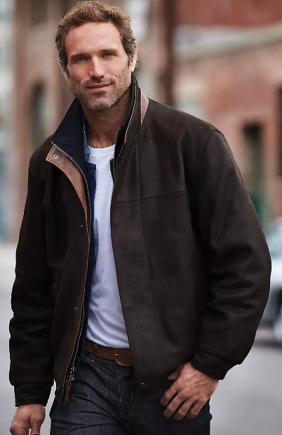 Beautifully crafted and built to last. Made of soft yet durable Kildare goatskin, the Romano Leather Jacket boasts a fine pebbled grain and rugged character that suits country and city gentlemen alike. Italian calfskin trim lines the front placket and pocket entry for contrast and added strength, while wool-blend lining with Thinsulate ensures cozy warmth on hardworking winter days. Zip up the front, snap the storm flap, and enjoy the double-collared protection the Romano coat affords. Adjustable snap cuffs, vertical front pockets, and two interior pockets finish this handsome design.