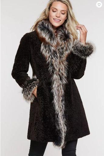 You get two totally different styles in one elegant coat with the Grace, a luxurious winter piece for years to come. One side features smooth lambskin leather, stitched in panels for a sleek, sporty look. The other boasts soft, textured Astrakhan shearling for a uniquely upscale style. On either side of this button-front coat, enjoy plush Finnish fox fur trim on the cuffs, collar, and tuxedo. Delightfully warm and beautiful to boot, this coat will take you to all your winter events with grace.