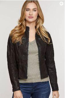 Want a moto jacket-inspired look that’s ultra lightweight and comfortable? Try the Heather, a cropped zip-front jacket that gives a nod to biker style while offering a uniquely beautiful style of its own. Made of lambskin leather with a distressed suede finish, this chic jacket features stretchy lining and thin stretch panels at the seams for visual appeal and all-day comfort. A stand-up collar and two zip chest pockets complete this fashionable design.