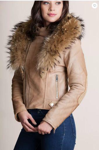 Starr Calfskin Leather Moto Jacket with Detachable Raccoon Fur Collar