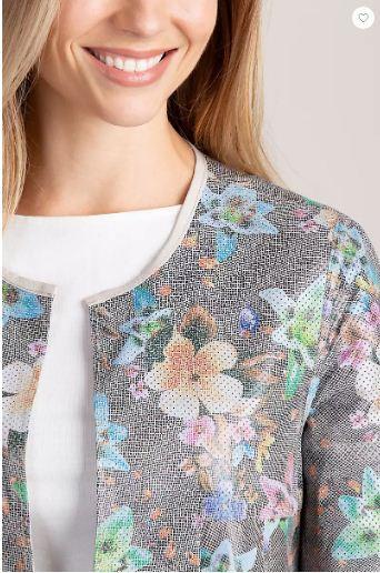 To traverse cool spring days in style, slip into this long leather coat with personality to spare. Made of silky Italian lambskin with perforated detailing, this open-front coat reverses to a floral print with a slight metallic sheen, and offers roomy pockets on each side. Piping at the collar, cuffs, and hem offers a contemporary finish to this versatile coat.
