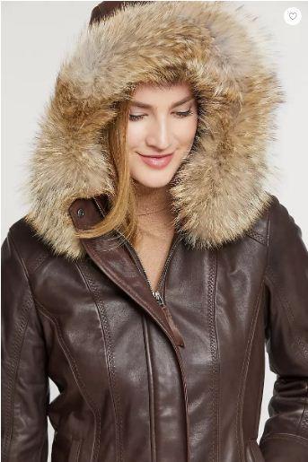 Feminine, flattering, and beautifully crafted, our Dana Leather Coat is your essential three-season jacket. It's made from the finest South African lambskin that's been drum-dyed, softly washed, and hand finished for a luxurious feel. This smart, elegant anorak features finished seams with single-needle topstitch and pick stitching, antique brass zipper front with storm placket, hand-warming pockets, and flattering vertical seams with a tapered fit. The Coyote-trimmed hood and the soft, wool-blend and satin lining keeps you snug, and looking so fine.