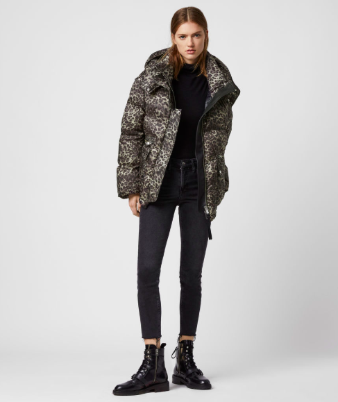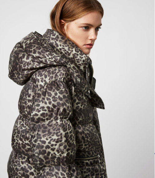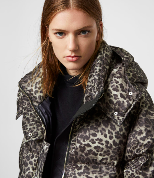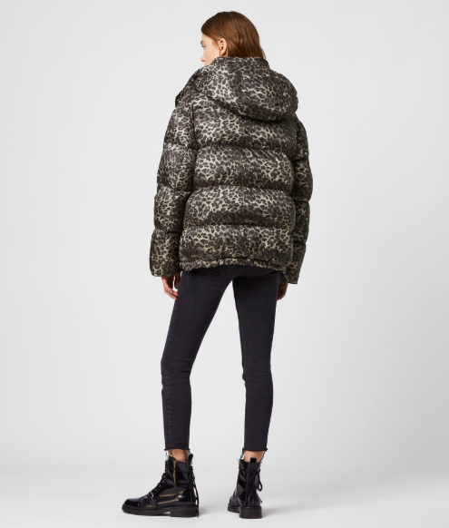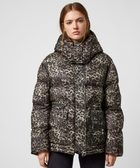 Wild about keeping warm. The Kala Puffer Coat features a leopard printed body with leather accents - this is making a statement.