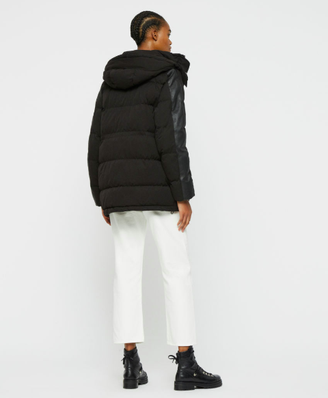 Battle the cold. The quilted Kyle Parka Puffer Coat is cut to a boxy, longline silhouette with a cosy hood and warm insulation. Leather strip detailing on the sleeves adds a touch of the AllSaints aesthetic.