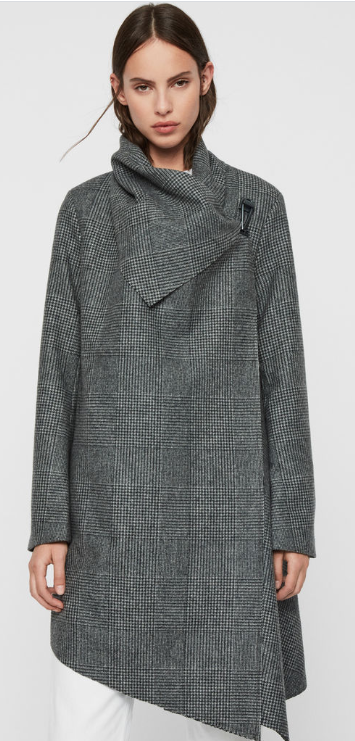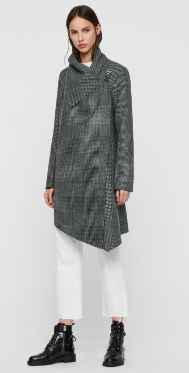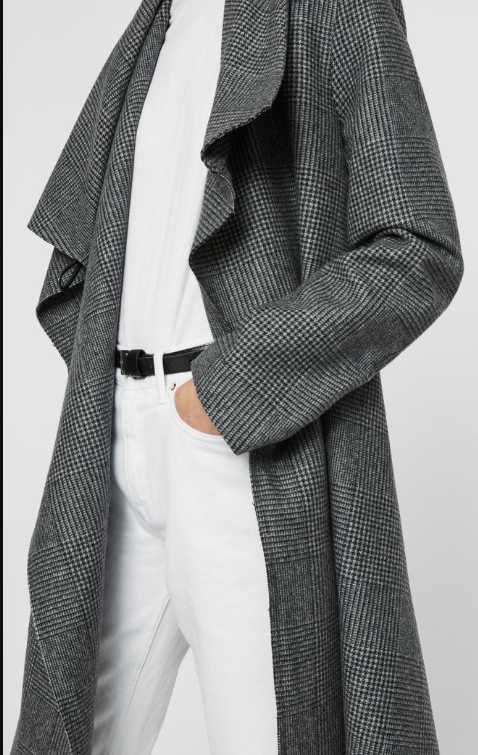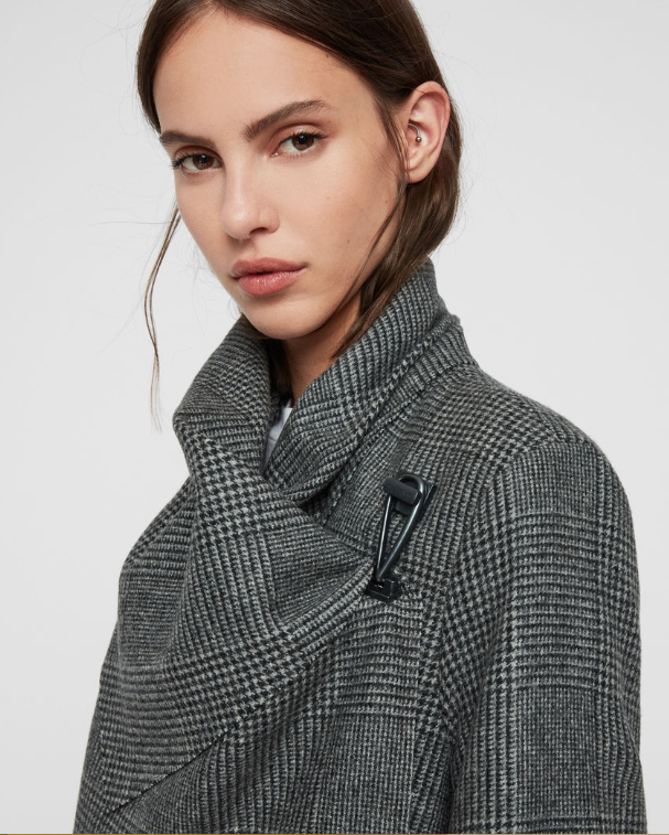 Be distinctive. The Monument Check Coat is modelled on our time-honoured City Momunemt, updated in checks. Cut to an asymmetric silhouette with an industrial metal closure at the shoulder, creating a flattering drape across the body.