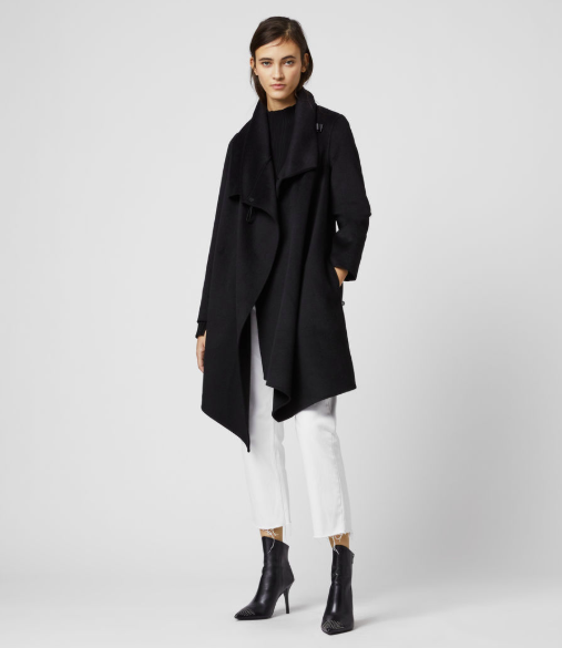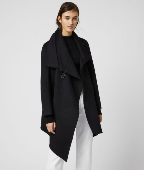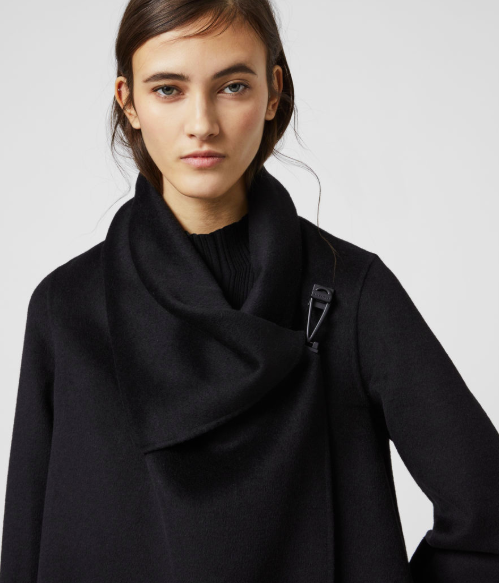 Be distinctive. The Monument Eve Coat is a time-honoured silhouette. Cut to an asymmetric shape with an industrial metal closure at the shoulder, creating a flattering drape across the body.
